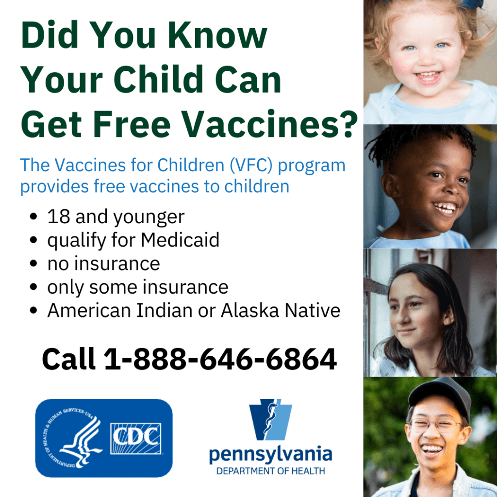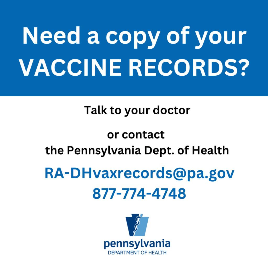 Many schools and sports activities require vaccinations. The Pennsylvania Department of Health requires certain immunizations for attendance to schools in the state. Schedule your children’s vaccinations early to avoid problems once the schoolyear starts. Set an appointment with your family doctor or children’s pediatrician today!