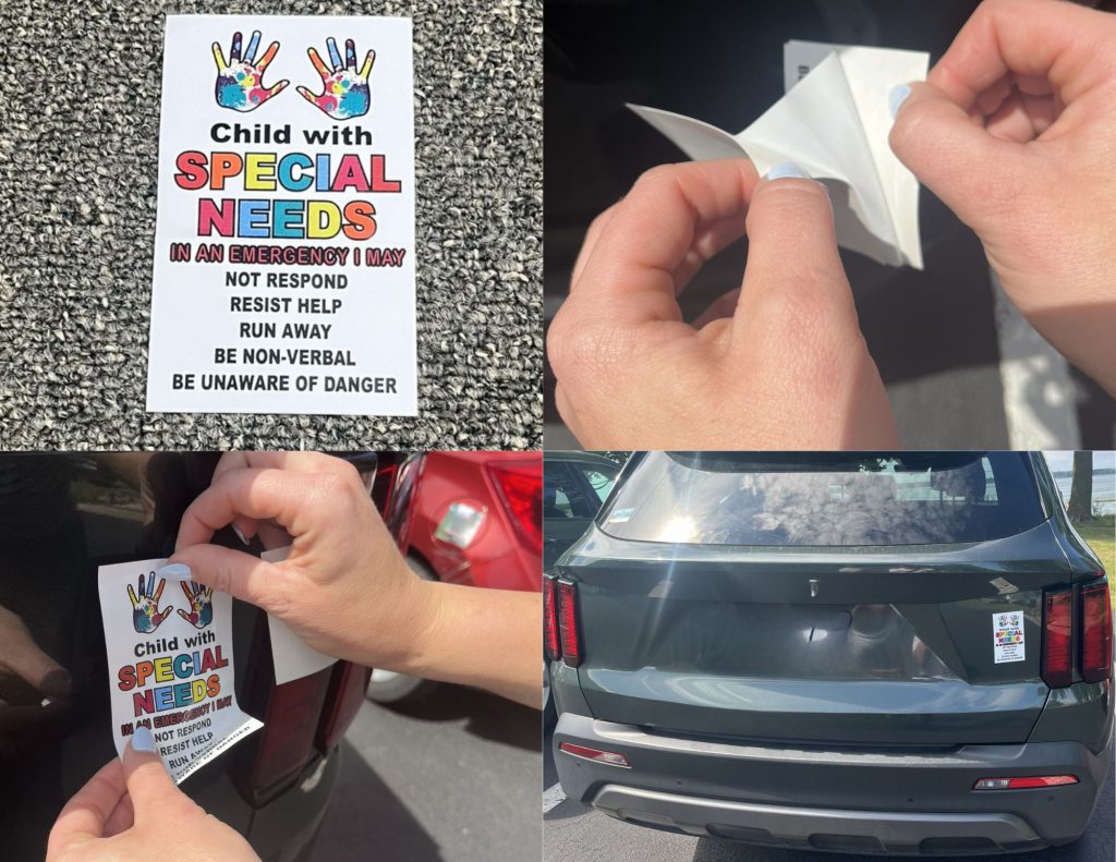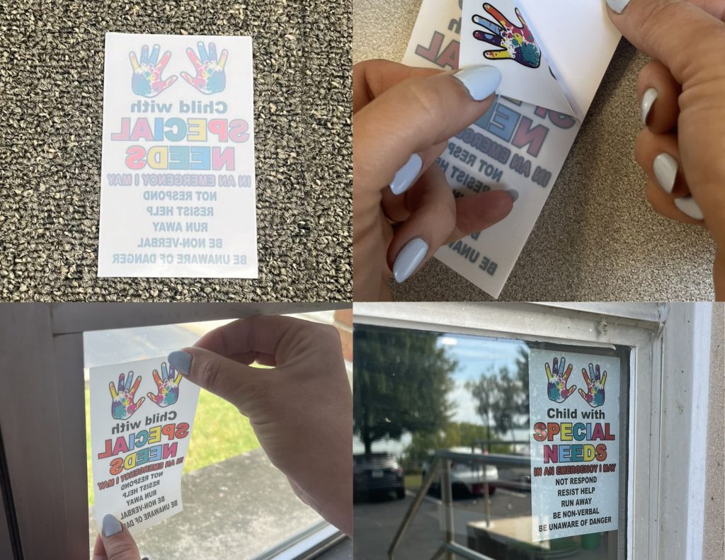 Place the “Child with Special Needs” signs on a prominent window in your home or the outside of your vehicle to let emergency responders know there is a child or youth who needs special assistance in an emergency.