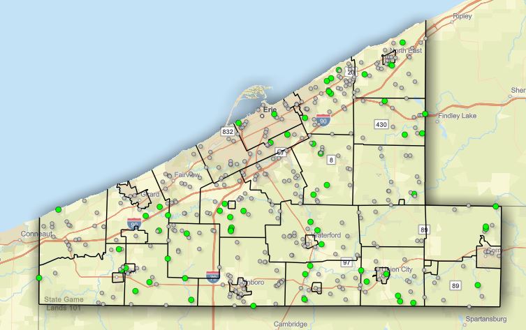 Erie County allocates all funds to municipalities. In addition to the formula distribution, Emergency Liquid Fuels funds are available by application and local bridge inspection costs are reimbursed yearly to municipalities.